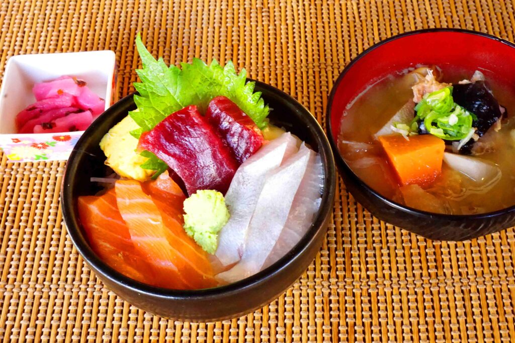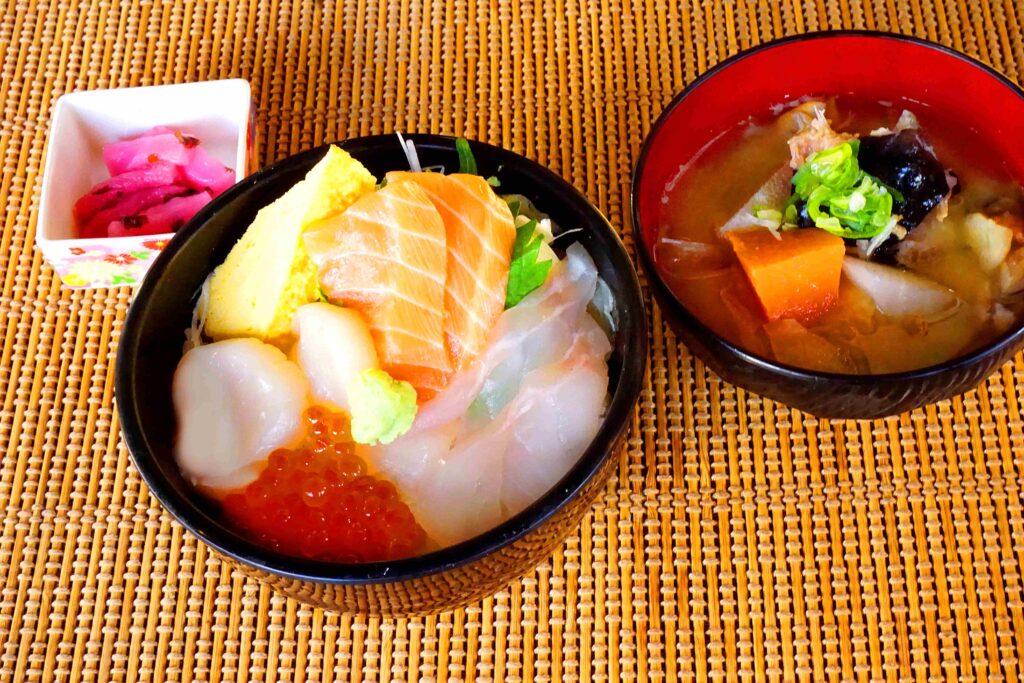 Salmon、 Salmon roe、 Scallops、Rock Fish、Daily soup.